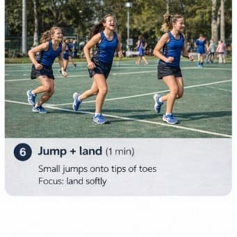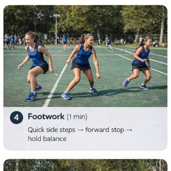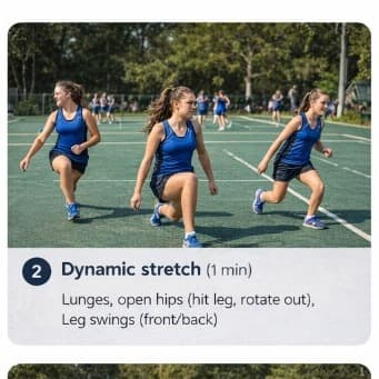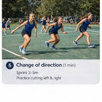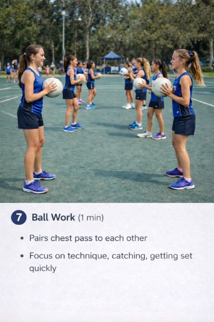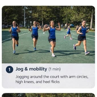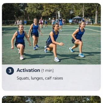 A simple netball warm-up you can run before training or games — about seven minutes all up, easy to follow on the sideline. Each step below includes a key focus for coaches and players.